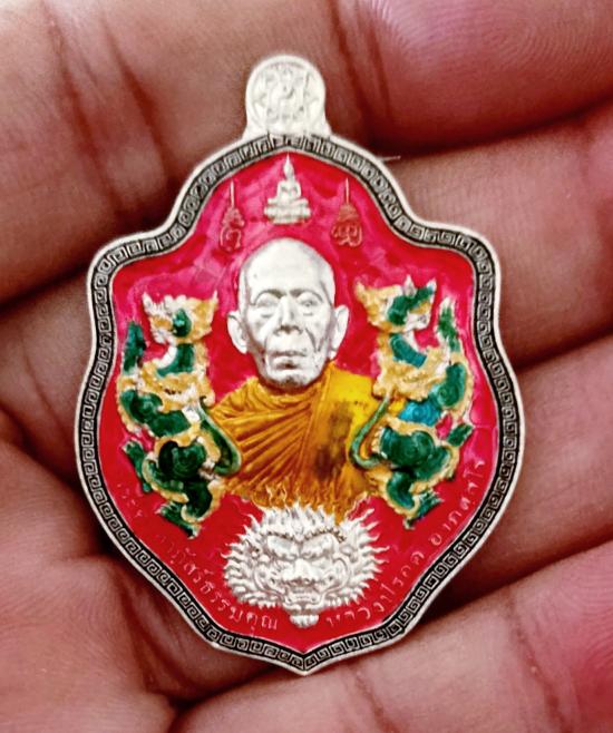 หลวงปู่รอด อาภัสสโร เหรียญมังกรรวยรับทรัพย์ เนื้อเงินบริสุทธิ์ ลงยาแดงเต็มสูตร NO.๒๒