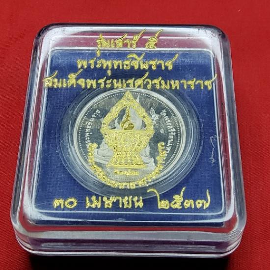 พระพุทธชินราช หลังสมเด็จพระนเรศวรมหาราช รุ่นเสาร์ ๕ วัดพระศรีรัตนมหาธาตุวรมหาวิหาร (วัดใหญ่) ปี2537 เนื้อเงิน ขัดเงาพ่นทราย จำนวนการผลิต 1,999 เหรียญ ผลิตจากโรงกษาปณ์เพิร์ธ |