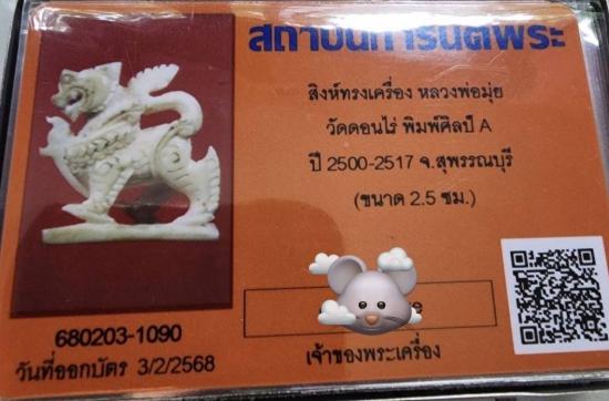 สิงห์ทรงเครื่อง ศิลป์A หลวงพ่อมุ่ย วัดดอนไร่ พร้อมบัตรรับประกันจากทางเว็บ พิจารณาให้ชอบก่อนเคาะนะครับ จะไม่ได้เสียเวลาทั้ง 2 ฝ่ายเคาะเดียวแดงครับ