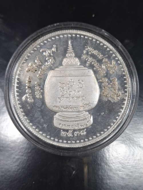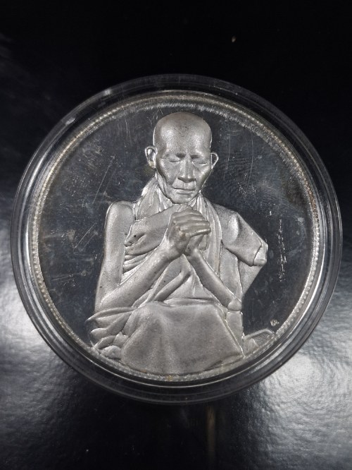 เหรียญหลวงพ่อเกษมหลังบัตรทิพย์ เนื้อกะไหล่เงิน ตอกโค๊ตนะ