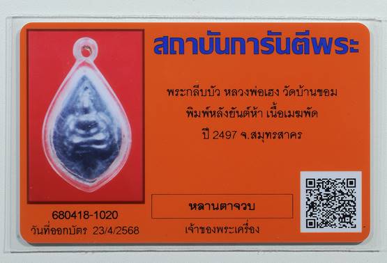 พระพุทธกลีบบัว หลวงพ่อเฮง วัดบ้านขอม เนื้อเมฆพัตร ปี2497 ครับ