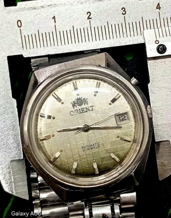 ขออนุญาตลงใหม่ครับ สมาชิกละทิ้งการประมูล***วินเทจ ORIENT Automatic 21 jewels 46741 Japan หน้า38มม. วันที่เปลี่ยนปกติเดินปกติ ***ปุ่มเล็กกดเปลี่ยนเร็ววันที่ใช้ไม่ได้***สายยาว23ข้อพร้อมใช้ราคาเบาๆหนครับ