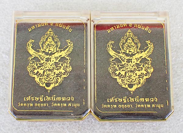 $วัดใจทีเดียว 2 องค์ค่ะ พญาครุฑทรงฤทธิ์ มหามนต์ 2 แผ่นดิน รุ่น เศรษฐีเหนือดวง (พิมพ์เล็ก) วัดครุฑ จ.อยุธยา วัดครุฑ จ.ลำพูน เนื้อมหาชนวนทองศรัทธา เลข ๑๓๒๔ + เลข ๑๓๒๘ พร้อมกล่องเดิมค่ะ$ |