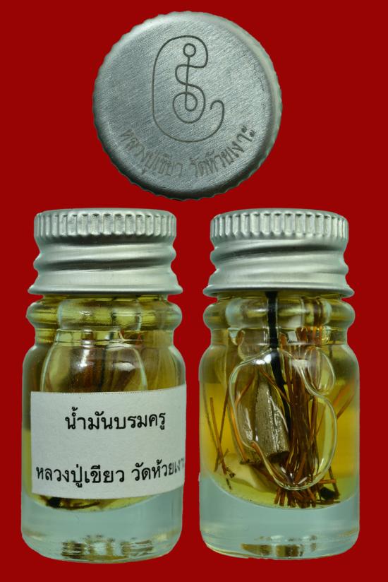 ในขวดนี้ มีนำ้มันที่พ่อท่านเขียวปลุกเสกตอนปี ๒๕๕๔ และน้ำมันบรมครูกาจับหลัก ของพ่อท่านแสง ปี ๒๕๕๘ ผสมอยู่ และนำไปปลุกกเสกในถ้ำ ที่วัดถ้ำยะลา และในอุโบสถ วัดห้วยเงาะ พ่อท่านเขียว ปลุกเสกเดียว
