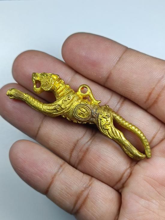เริ่ม 100.- *** เสือปืนแตกยันต์กลับ (รุ่น 7) หลวงปู่แย้ม วัดตะเคียน จ.นนทบุรี เนื้อทองเหลือง |