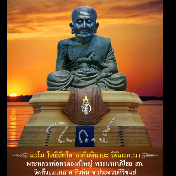พระหลวงปู่ทวด วัดห้วยมงคล ลอยองค์ ก้นลายเซ็นต์ โลหะผสมรมดำ- เลี่ยมไมครอนเดิมวัด |