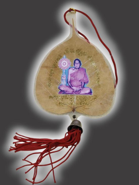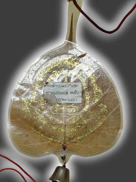 A3439.ใบโพธิ์ หลวงพ่อเมี้ยน สำหรับห้อย แคล้วคลาดปลอดภัย วัดบุญญราศรี ชลบุรี ปี 2551 |