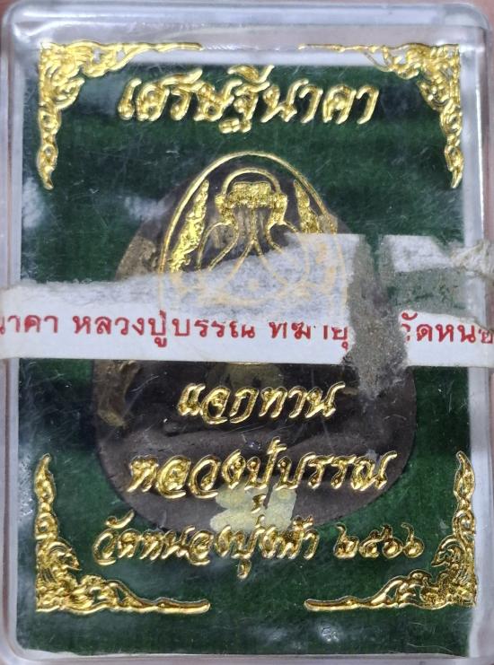 พระปิดตาเศรษฐีนาคา หลวงปู่บรรณ ฑีฆายุโก วัดภูด่านแต้ จ.สกลนคร วัตถุประสงค์สร้างโบสถ์ วัดหนองบุ่งฟ้า มีจาร กล่องเดิม |
