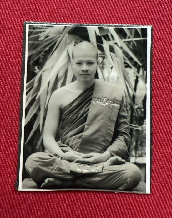 รูปถ่ายสีซีเปียพระอาจารย์เบ๊นซ์ วัดราชาธิวาส หลังแผ่นตะกั่วจารยันต์ ตอกเลข 159 |
