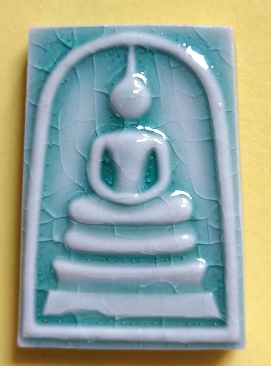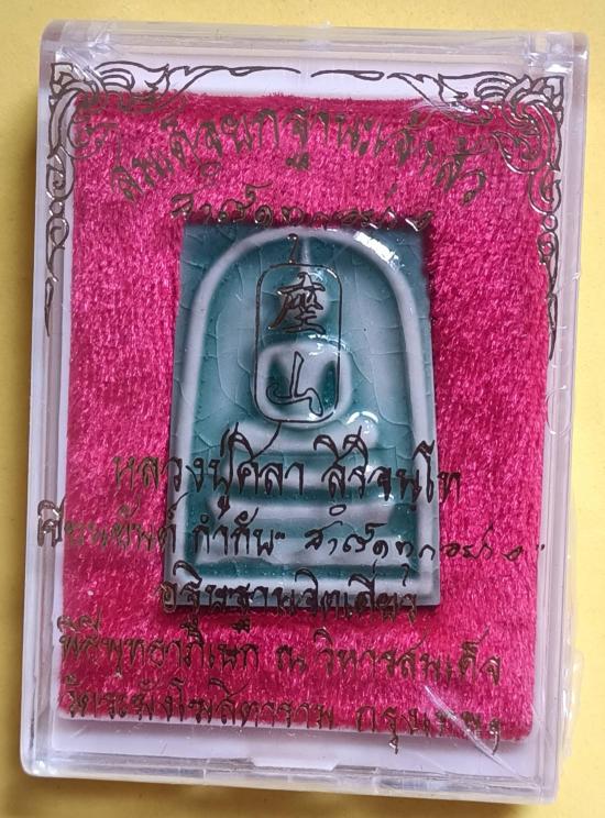 สมเด็จยกฐานะเจ้าสัว ลป.ศิลา เนื้อกระเบื้องเคลือบเขียว รุ่นสำเร็จทุกอย่างปี๖๗ โค๊ต-เลข |