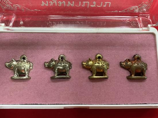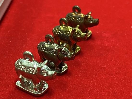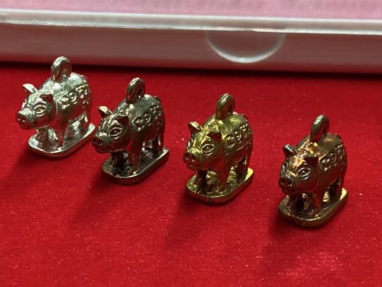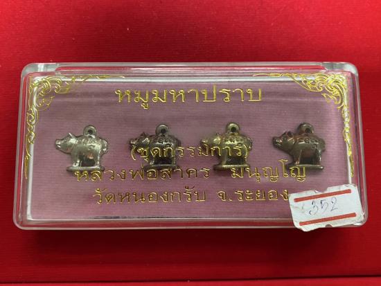 หมูมหาปราบรุ่น4 ชุดกรรมการ หลวงพ่อสาคร วัดหนองกรับ จัดสร้างปี 2555 No.352 จัดสร้างน้อยมากเพียงแค่ 555 ชุดเท่านั้น สวยเดิมทุกตัว ชุดนี้ประกอบด้วยหมู 4 ตัว 4 เนื้อ ดังนี้ 1.เนื้อเงิน 1 ตัว