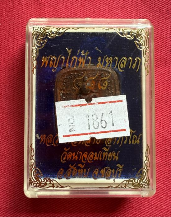 พระผงพญาไก่ฟ้า มหาลาภ หลวงปู่หลาย วัดนาจอมเทียน จ.ชลบุรี เนื้อดินเผาอุดผง ตะกรุด 1 ดอก หมายเลข 1861 |