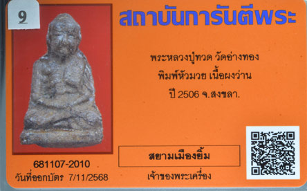 พระหลวงปู่ทวด วัดอ่างทอง พิมพ์หัวมวย เนื้อผงว่าน ปี2506