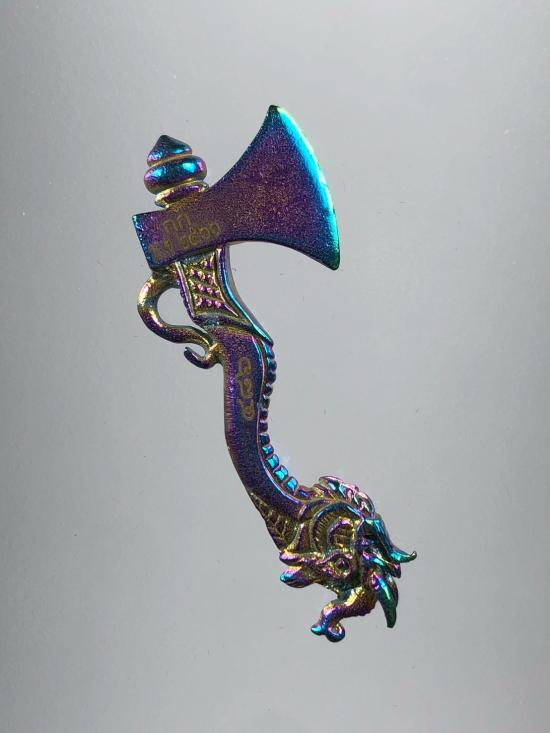 วัดใจ 130 หลายรายการ... ขวาน พ่อท่านเวาะห์ วัดเทพนิมิต จ.ปัตตานี เนื้อรมไทเทเนียม (สีรุ้ง) ปี2566 |