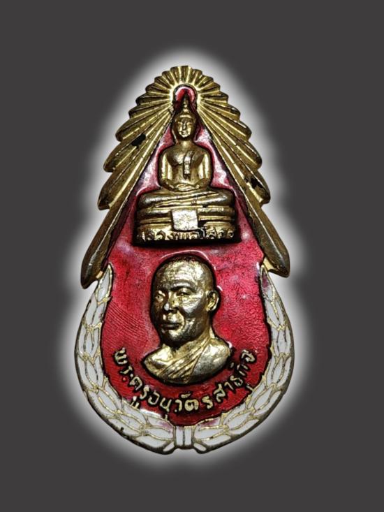 A3490.เหรียญปั้มติดเข็มกลัดลงยา พระครุูอนุวัตรสาธุกิจ วัดบ้านนา ปี2523 |