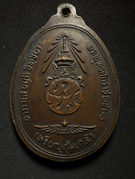 ด้านหน้ามีพระพุทธรูปพระพุทธชินราช ซึ่งเป็นที่เคารพสักการะของชาวไทย และด้านหลังได้รับพระราชทานพระปรมาภิไธยย่อ " ภปร " ได้สร้างขึ้นเพื่อแจกจ่ายแก่ชาว ทอ. เป็นสิริมงคลและกำลังใจในการปฏิบัติหน้าที่ราชการ