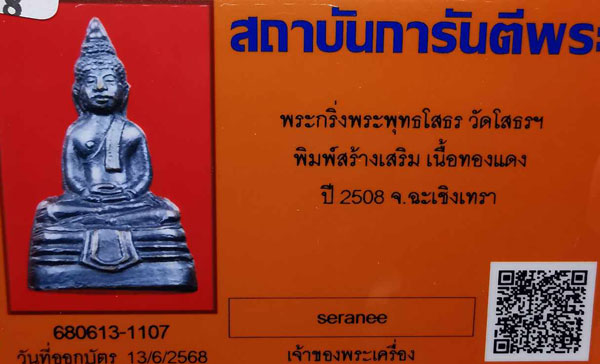 พระกริ่งพระพุทธโสธร วัดโสธรฯ พิมพ์สร้างเสริม เนื้อทองแดง กริ่งดัง ปี2508 จ.ฉะเชิงเทรา + บัตรG-pra สภาพเดิมค่ะ สภาพตามรูปทุกประการค่ะ