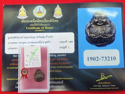 ลูกอมพระสังกัจจายน์ หลวงพ่อพูล วัดไผ่ล้อม เนื้อโลหะ ปี2545 ติดรางวัลที่1 |