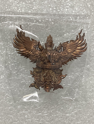 เคาะเดียวแดง 100 พญาครุฑทรงฤทธิ์ ชนะมาร วัดครุฑธาราม พระนครศรีอยุธยา พิมพ์เล็ก สูง 3.2 ซ.ม. เนื้อทองแดงขัดยาดำ (แจกในพิธี) |