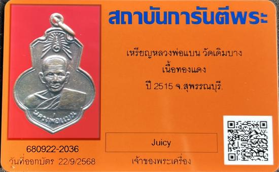 2.เหรียญหลวงพ่อแบน วัดเดิมบาง พระอาจารย์ ของหลวงพ่อกวย วัดโฆษิตาราม และหลวงพ่อจวน วัดหนองสุ่ม