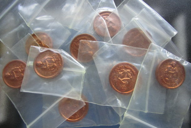เหรียญล้อแม็กซ์ " รุ่น กูรักมึงเสมอต้นเสมอปลาย" หลวงพ่อคูณ วัดบ้านไร่ ปี 2538 (การบินไทยจัดสร้าง) เนื้อทองแดง...ผิวไฟแดงแวบเลย......สวยมาก.......ซองเดิมๆ...10 เหรียญ.....เหรียญการบินไทยจะพบเจอน้อย...เ |