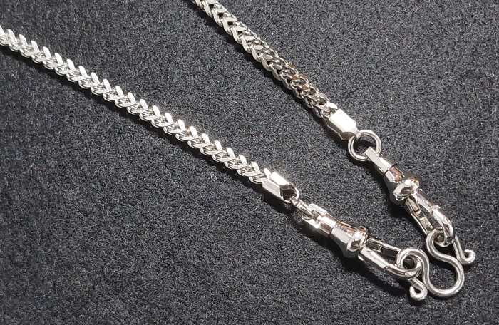 สร้อยสแตนเลสลายสี่เสา หนา 3.3 มิล ยาว 25 นื้ว พร้อมสปริงก้ามปูสแตนเลส1คู่ สำหรับห้อยพระ2ห่วง3ห่วง และห่วงตัวM ไว้ห้อยพระ1องค์ .. |