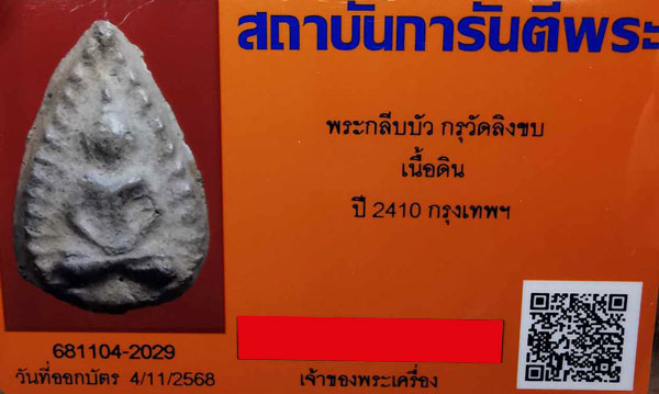 พระกลีบบัว กรุวัดลิงขบ เนื้อดิน ปี2410 จ.กรุงเทพฯ + บัตรG-pra สภาพเดิมค่ะ สภาพตามรูปทุกประการค่ะ