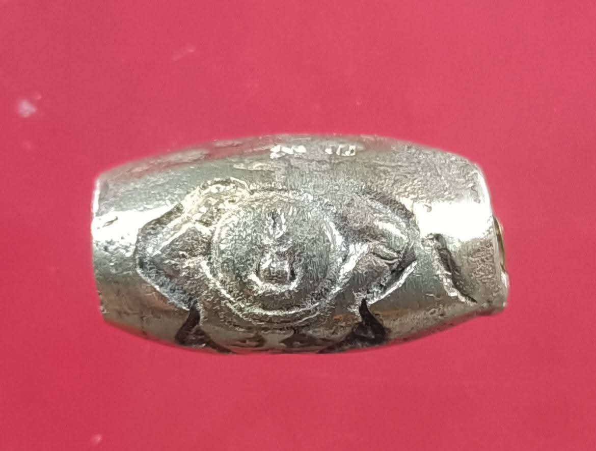 ลูกสะกด ยันต์พระราหู รุ่นสุริยุปราคา ปี 2538 หลวงพ่อเกษม เขมโก เนื้อชินปรอท ด้านในสอดตะกรุด **5