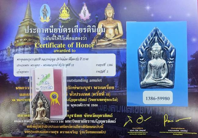 พระขุนแผนกุมารทองสมบัติ หลวงพ่อพูล วัดไผ่ล้อม เนื้อตะกั่วหน้ากากเงิน ปี2548 ติดรางวัลที่2 |