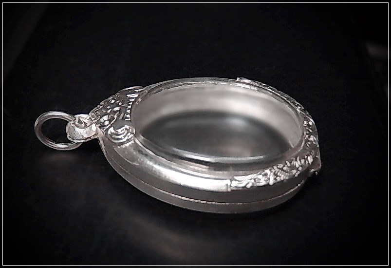 ตลับเงินผสมใส่พระเหรียญรูปไข่ขนาดตามภาพถ่ายเคาะเดียวครับ |