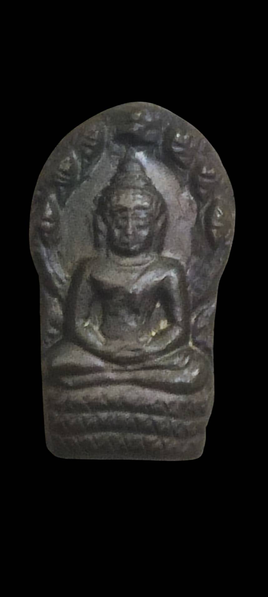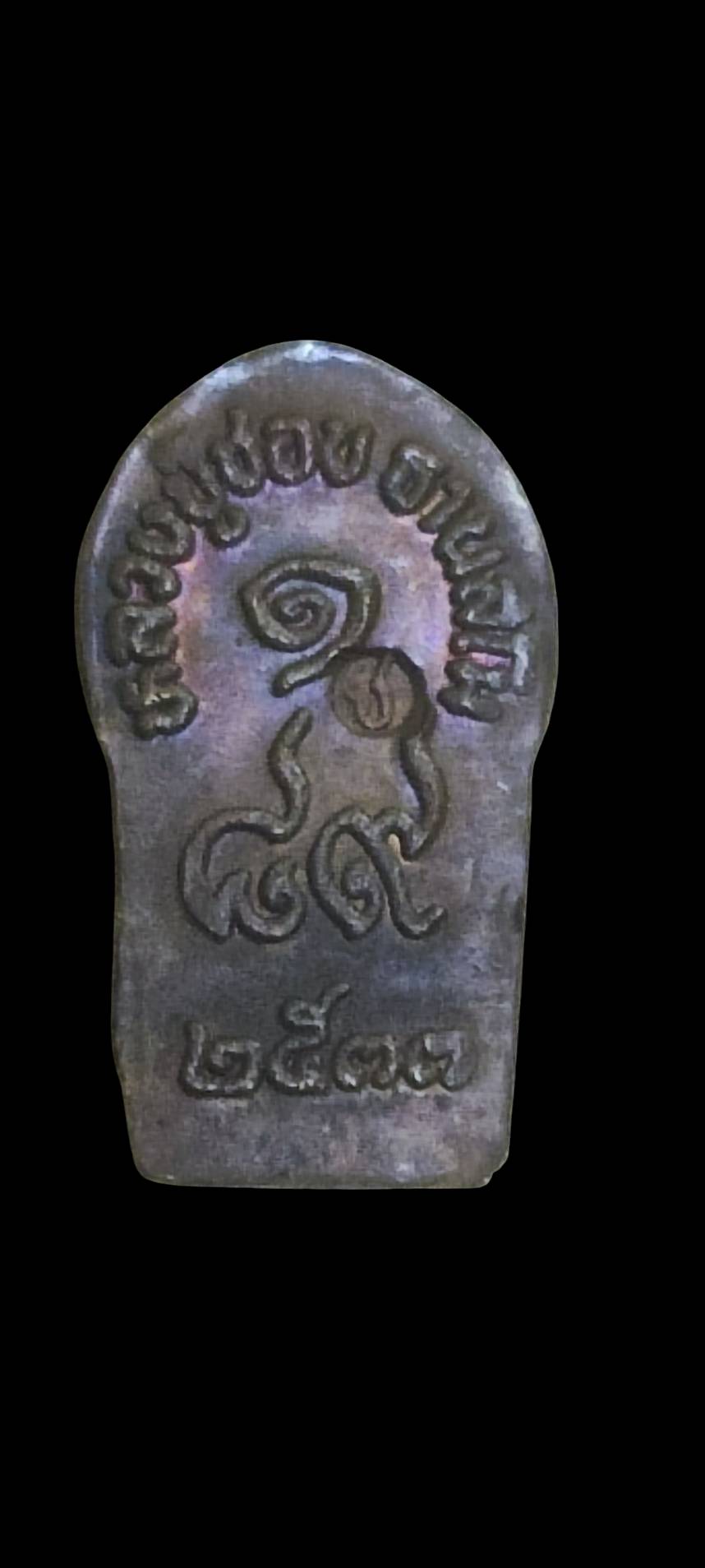พระปรกใบมะขามรุ่นแรกหลวงปู่ชอบ ฐานสโม ปี ๒๕๓๓ เนื้อทองแดงผิวไฟ |
