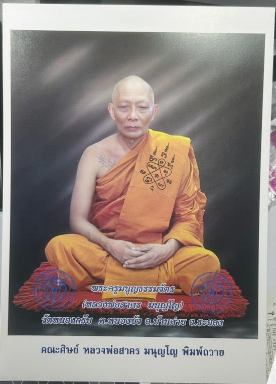 ๑.รูปภาพหลวงพ่อสาคร หลังโค้ดตรายาง ขนาด 8 นิ้ว * 12 นิ้ว (ขนาด A4 )