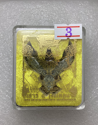 พญาครุฑเสาร์5 เงินไหลมา วัดพระมหาธาตุวรมหาวิหาร จ.นครศรีธรรมราช เนื้อทองเตโชทิพย์ ปีกทองขาว พระธาตุทองล่ำอู่ ขนาด 4.3 ซ.ม. ซีลเดิมยังไม่ได้แกะ |