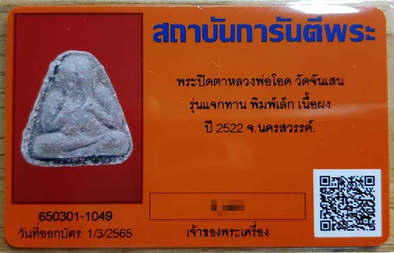พระปิดตาแจกทาน หลวงพ่อโอด ปี2522 พิมพ์เล็ก เนื้อผง วัดจันเสน จ.นครสวรรค์ พร้อมบัตรรับรองครับ |