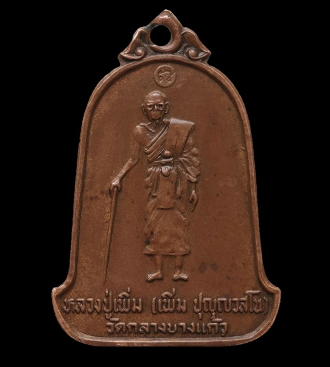 เหรียญระฆัง(ถือไม้เท้า)นิยม เนื้อทองแดงปี21 หลวงปู่เพิ่ม วัดกลางบางแก้ว สวย |