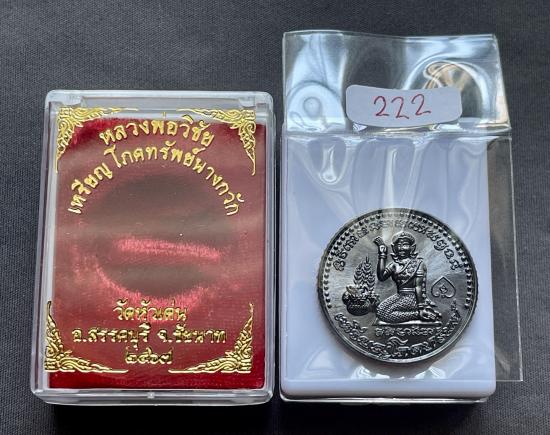 เหรียญโภคทรัพย์ "นางกวักหลังหนุมาน" หลวงพ่อวิชัย วัดหัวเด่น "เนื้อทองแดงรมดำ" เลขตองสุดสวย 222 สวยกริ๊บ |