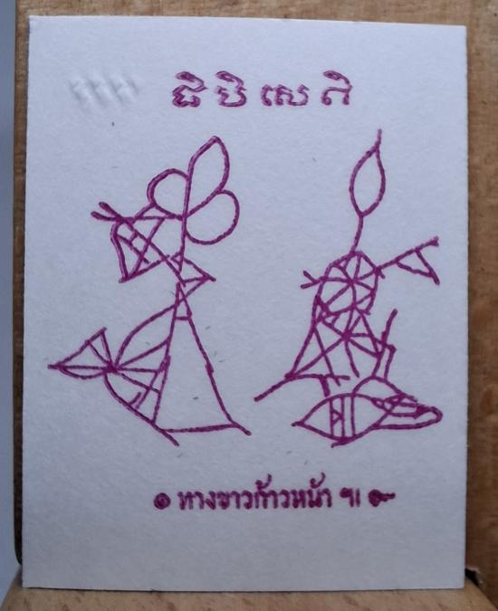 ภาพถ่ายคุณแม่บุญเรือน โตงบุญเติม ล้างอัดด้วยวิธีการห้องมืด (ไม่อัดกระจก) ความคมชัดของรูปสมบรณ์สวยงามถึงขีดสุด ตอกโค้ดพุทโธทุกใบ ด้านหลังปั๊มตรายาง เป็นรอยเท้าคุณแม่ และเขียนว่า ทางขาวก้าวหน้า ด้านบนลงหัวใจปฏิสังขาโย (จิปิเสคิ)