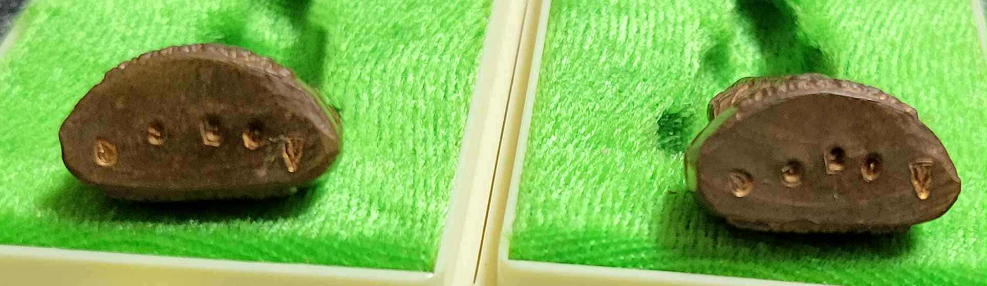 เคาะเดียวแดง รูปเหมือนปั๊ม เสาร์ห้า หลวงพ่อลออ พิมพ์ผู้ใหญ่ลี เนื้อทองแดงผิวไฟ รวมสององค์ |
