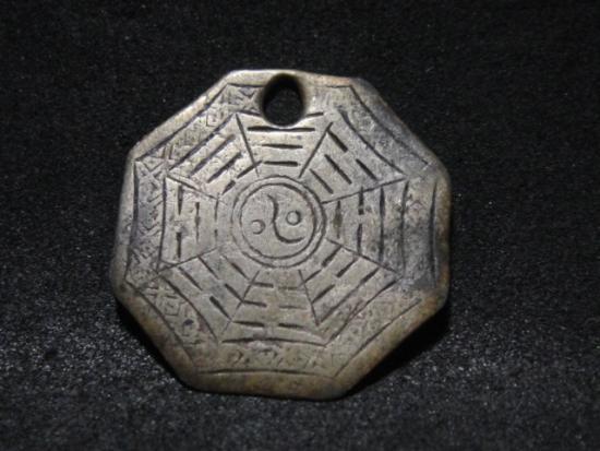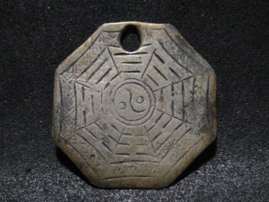 วัดใจเคาะเดียว........100.........เหรียญยันต์แปดเหลี่ยม(โป๊ยข่วย) แปดทิศ หยินหยาง หลังภาษาจีน เก่าๆ |