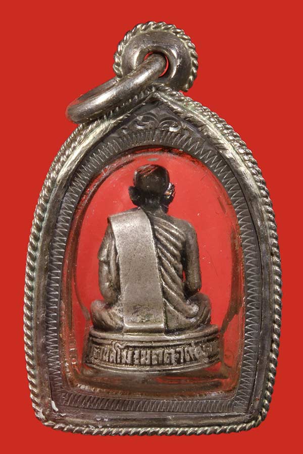 รูปหล่อหลวงปู่ชอบ ฐานสโม เนื้อเงิน ใต้ฐานอุดเกศา แดงเคาะแรก