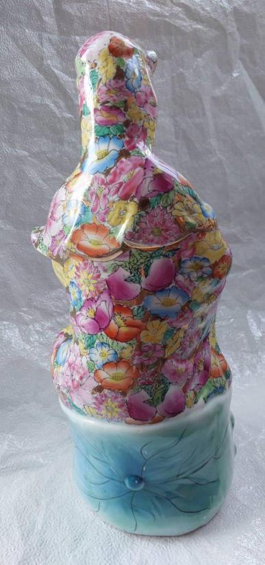 เจ้าแม่กวนอิมนั่งชันเข่า งานกระเบื้องกังไสเก่า สูง 18 นิ้ว