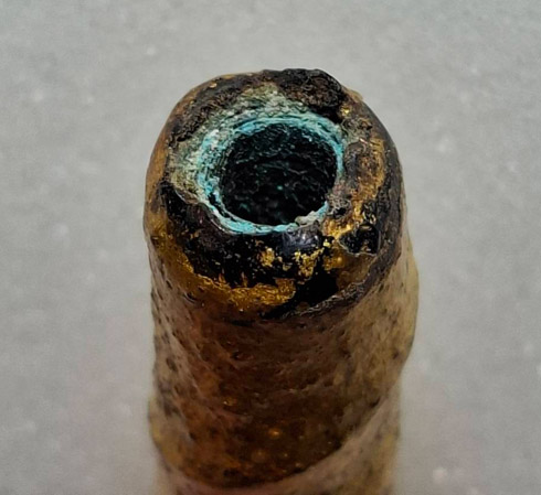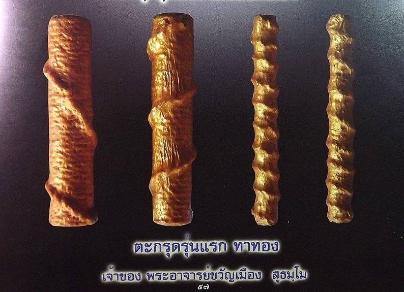 ตะกรุดยุคต้น หลวงปู่หมุน วัดบ้านจาน เนื้อทองแดงถักเชือกทาทอง |