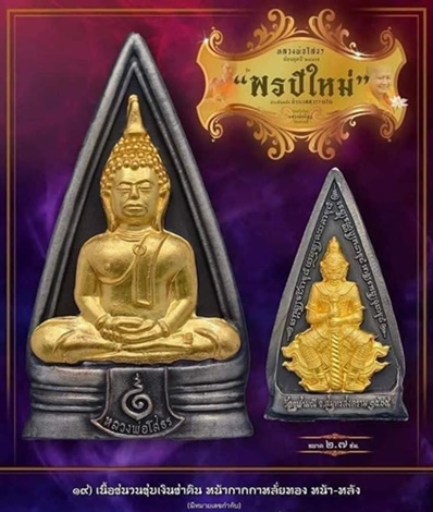 เหรียญหลวงพ่อโสธรประทับหลังท้าวเวสสุวรรณ รุ่นพรปีใหม่ (เนื้อชนวนชุบเงินซาติน หน้ากากกาหลั่ยทอง) หน้า-หลัง ซีลเดิมลุ้นเลขสวยเลขเทพ |