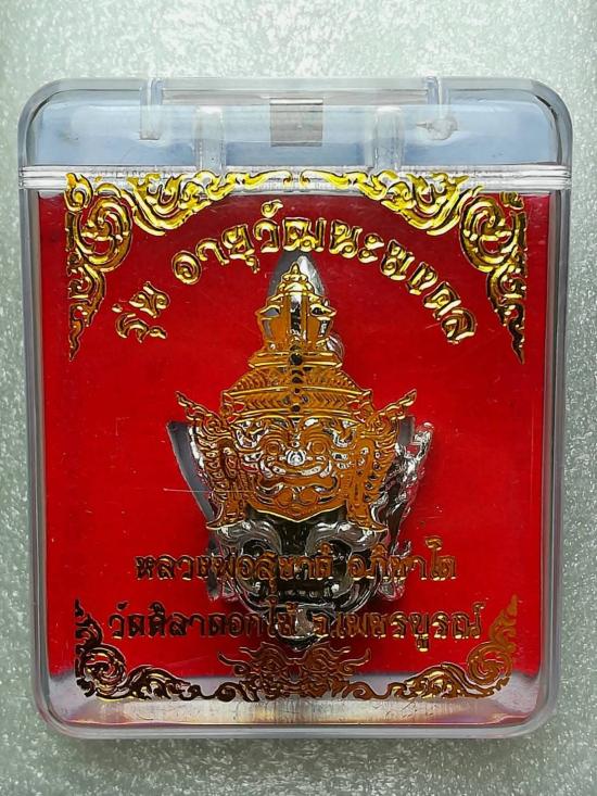 เคาะเดียวแดง......เศียรท้าวเวสสุวรรณ รุ่นอายุวัฒนมงคล หลวงพ่อสุชาติ อภิชาโต วัดศิลาดอกไม้ จ.เพรชบูรณ์ หมายเลข 64 กล่องเดิม |