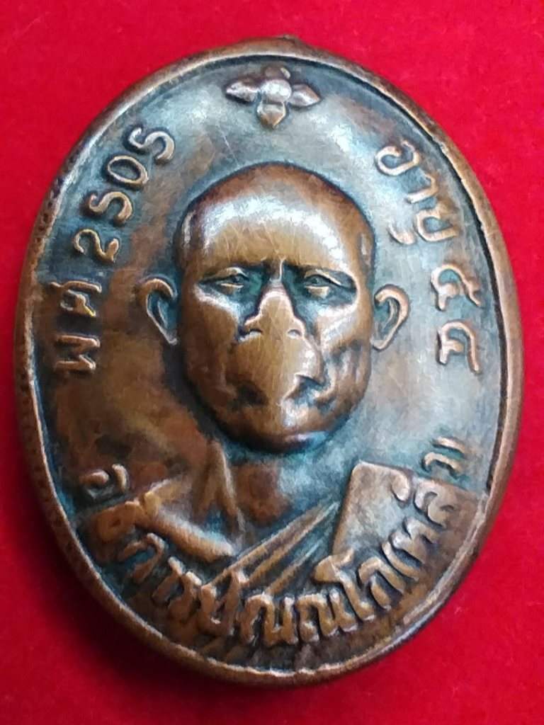 วัดใจ เหรียญหลวงปู่หลิว รุ่นอายุ 54ปี เนื้อทองเเดง วัดสนามแย้ ปี2505 จ.กาญจนบุรี สภาพศึกตัดหูเหรียญ |