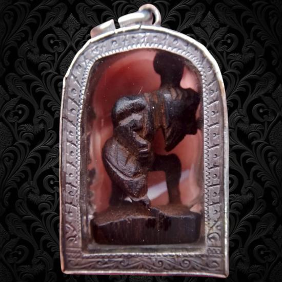 ชูชกไม้แกะหลวงปู่ทิม วัดละหารไร่ เนื้อไม้ตับเต่า เก่าเดิมๆ พร้อมตลับเงิน |