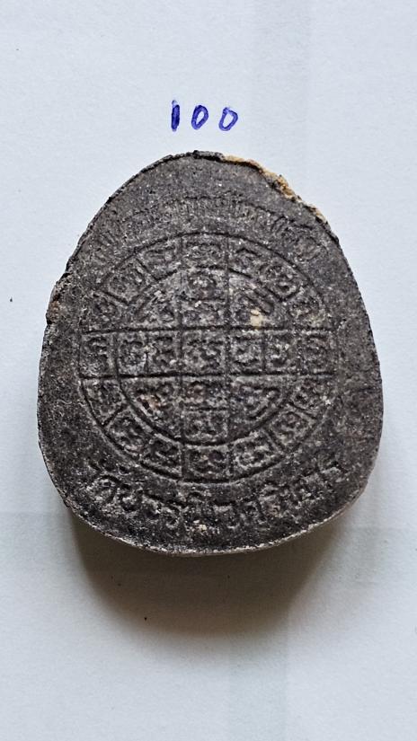 พระปิดตายันต์ดวงเล็ก เนื้อ2สี เกสรกับใบลาน มีคราบคล้ายน้ำมนต์ครับ(๑๐๐) |