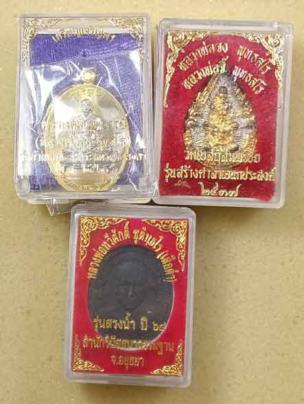 เหรียญเจริญพร หลวงพ่อพูน วัดบ้านแพน อยุธยา +เหรียญหล่อหลวงพ่อจง วัดโบสถ์สมพรชัย จ.อยุธยา ปี37 +พระผงหลวงพ่อเสือดำ วัดศรีนวลฯ กรุงเทพฯ รุ่นสรงน้ำ ปี2564 สำนักกรรมฐาน อยุธยา |