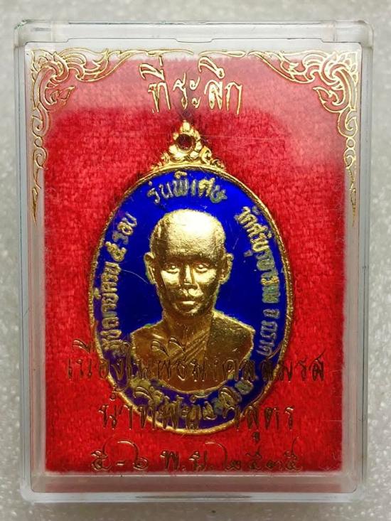 เคาะเดียวแดง.....เหรียญหลวงปู่บัว วัดศรีบูรพาราม ปี 2533 เนื้อกะไหล่ทองลงยา |