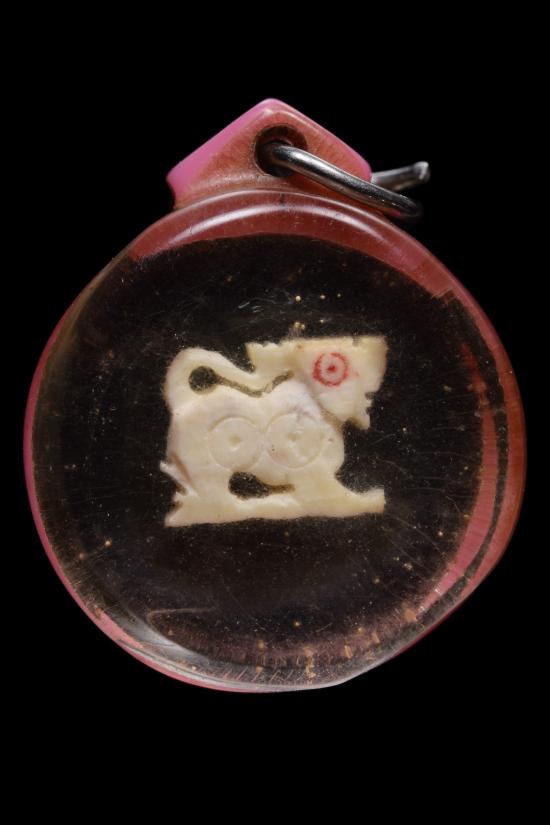 สิงห์งาแกะพิมพ์จิ๋ว เลี่ยมเดิม หลวงพ่อหอม วัดชานหมาก |